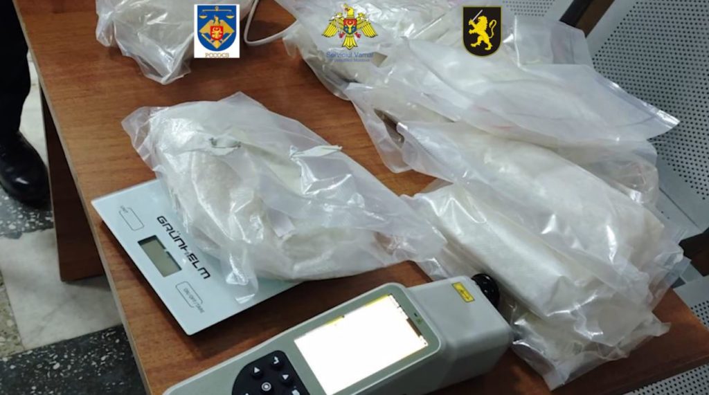 Substanța suspectă a fost descoperită într-un autocar de rută care venea din România spre Chișinău. Vehiculul s-a prezentat la control în seara zilei de 12 martie, iar în urma verificării detaliate a bagajelor a fost identificată o valiză neînsoțită. În interiorul acesteia se aflau 12 pachete cu o substanță cristalină cu miros specific.