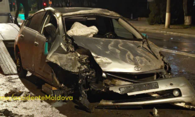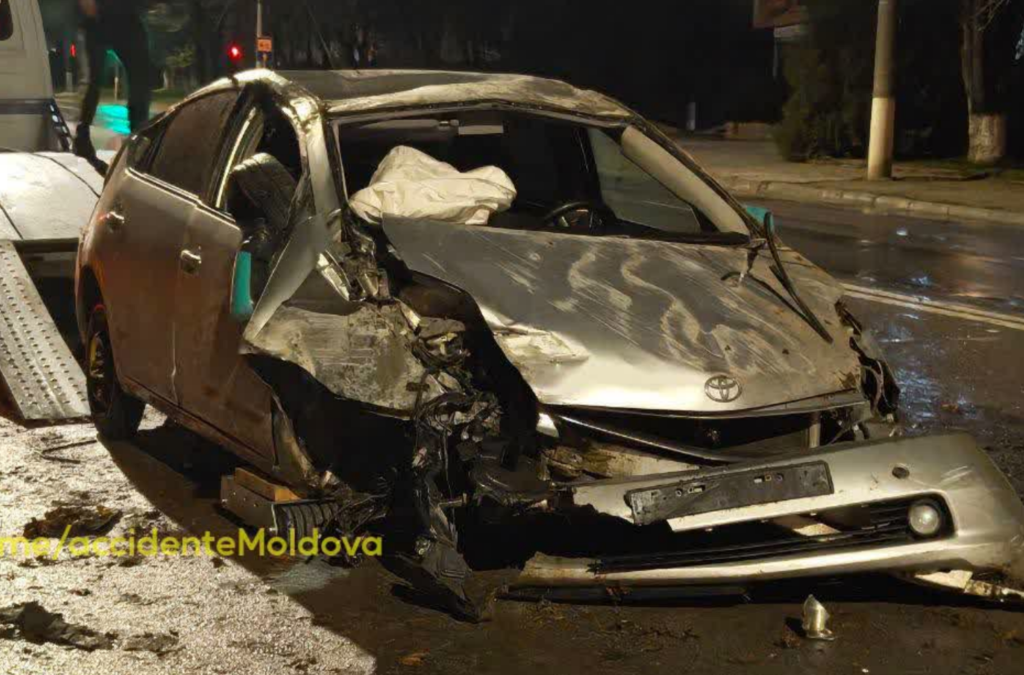 Potrivit Poliției, accidentul s-a produs la ora 01:30, când un automobil Toyota a lovit bordura și s-a răsturnat pe carosabil. Imaginile de la fața locului arată mașina grav avariată.