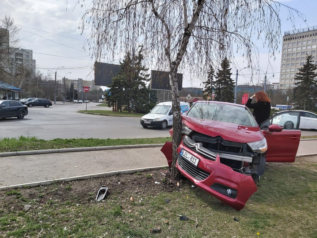 A încercat să evite un impact și a dat cu mașina într-un copac. Este cazul unei șoferițe din Chișinău.