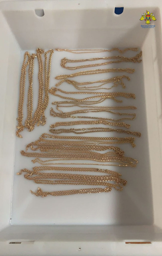 Ulterior, ca rezultat al controlului special de securitate, cu ajutorul intrascopului cu raze X de tip Rapiscan, în bagajul de mână au fost depistate 34 lanțuri din metal, aparent prețios de culoare galbenă, nedeclarate controlului vamal și ascunse printre lucrurile personale, în scopul transportării frauduloase a acestora.