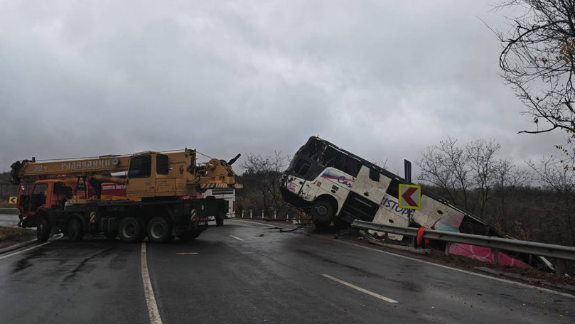 Potrivit Poliției, șoferul autocarului, un bărbat de 55 de ani, ar fi pierdut controlul volanului într-o curbă, din cauza vitezei neadaptate la condițiile meteo și de drum. În urma impactului, vehiculul s-a întors în afara carosabilului.