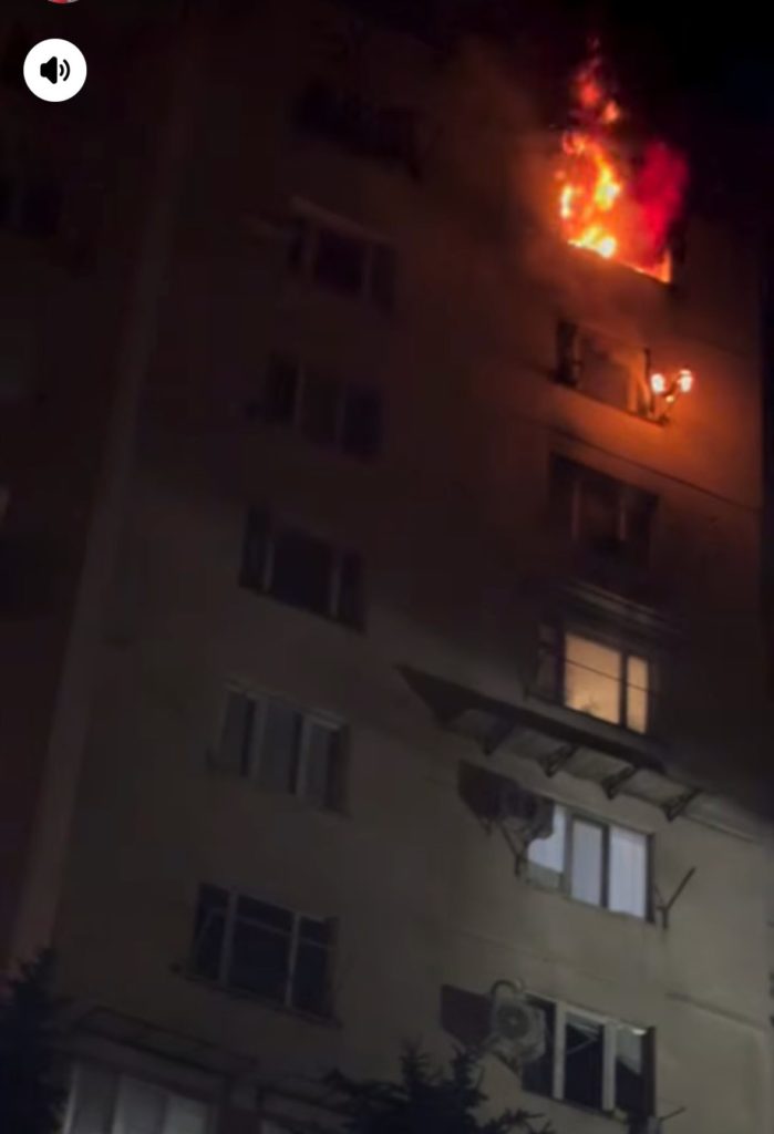 Incendiu la etajul 12, în capitală: Un apartament a fost cuprins de flăcări, iar o femeie a fost evacuată de pompieri.