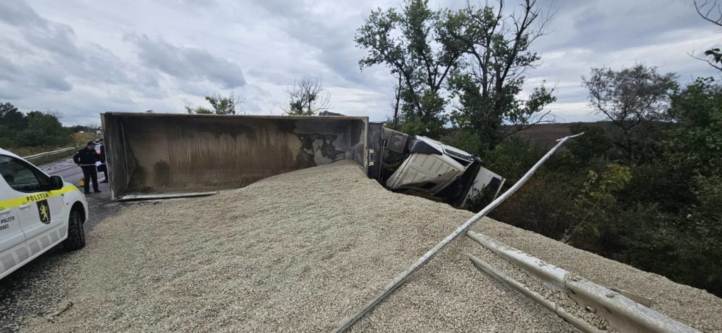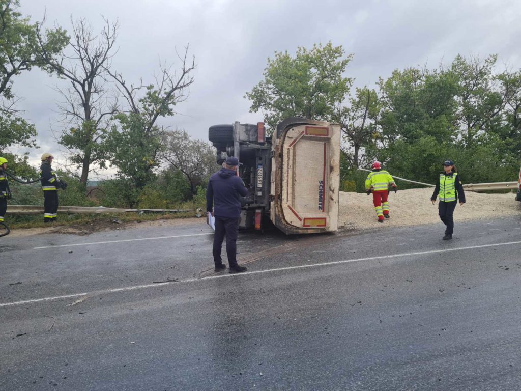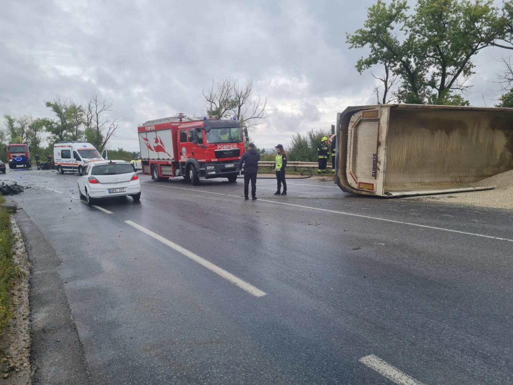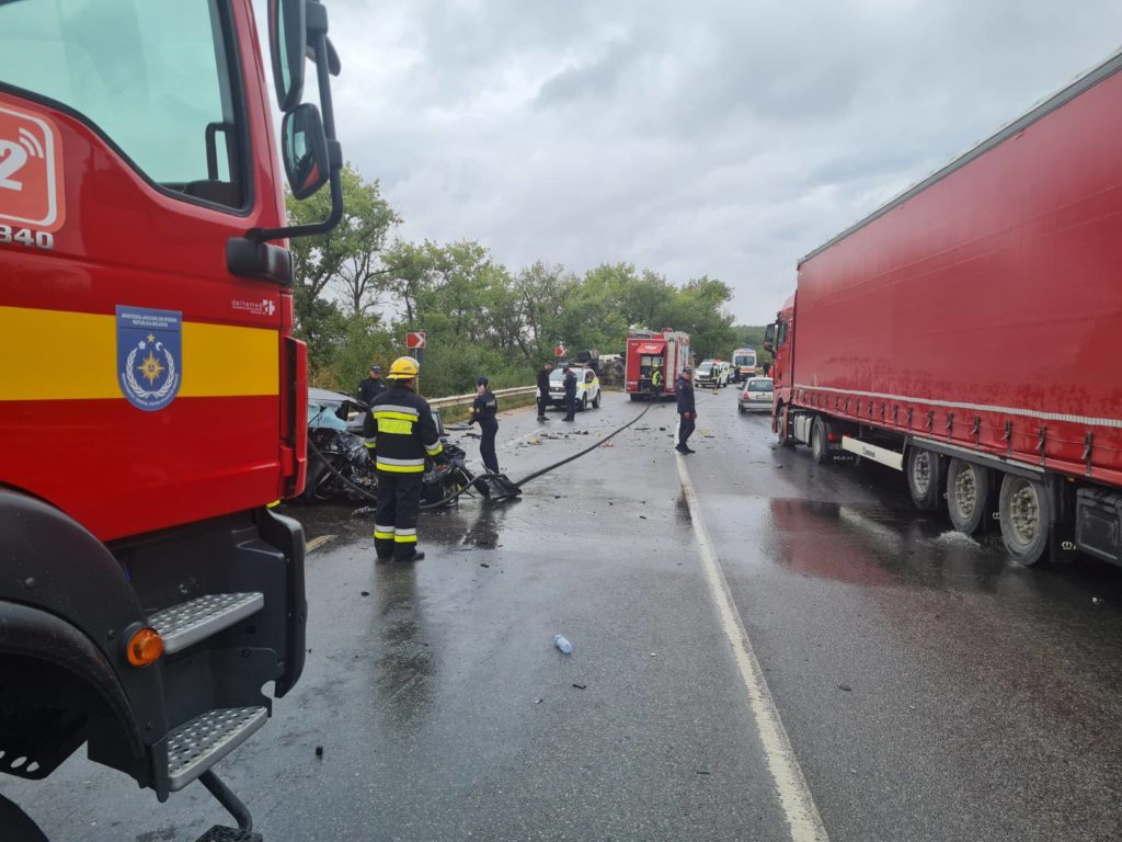 Potrivit informațiilor preliminare, accidentul ar fi fost provocat de un șofer de 57 de ani. În circumstanțe neclare, bărbatul ar fi pierdut controlul volanului și ar fi intrat cu viteză pe contrasens, unde s-a tamponat frontal cu un camion care circula din sens opus. Impactul a fost devastator- mașina s-a transformat într-un morman de fiare, iar camionul a rupt parapetul și s-a răsturnat. Mai mult, pietrișul transportat de tir s-a împrăștiat pe asflat, blocând traficul.