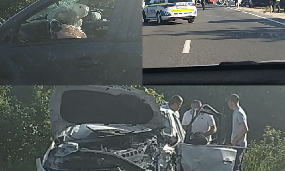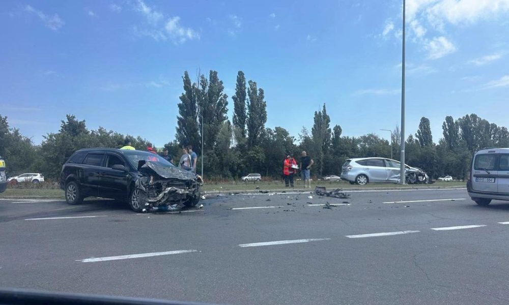 Scene de groază, în Capitală! Două mașini s-au ciocnit frontal, iar în urma impactului, doi copii și un adult au ajuns la spital.