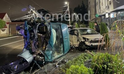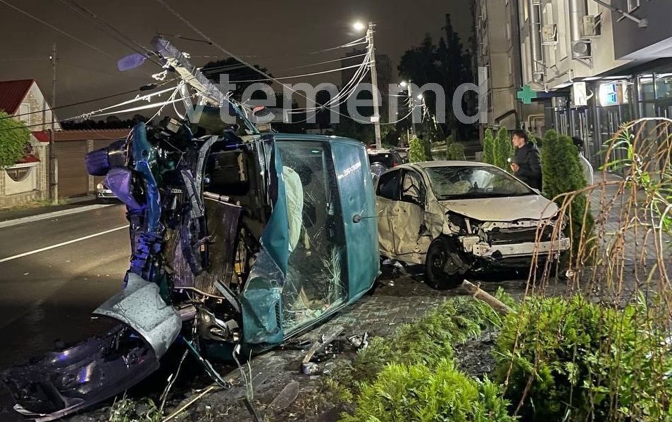 Accident grav pe strada Visarion Belinschii din Chișinău: două mașini s-au ciocnit violent, iar una dintre ele a fost proiectată în afara carosabilului, izbind un pilon...