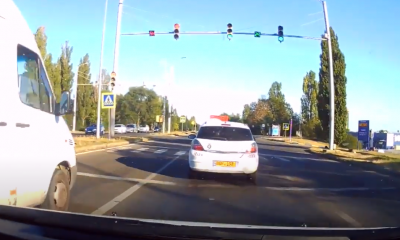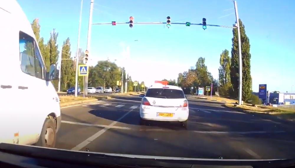 Momentul în care doi șoferi încalcă regulile de circulație a fost surprins de camera de bord a unui alt automobilist