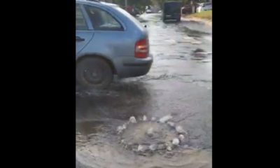 Strada 31 august din centrul capitalei s-a transformat într-un râu după ce o țeavă s-a spart. Apa a țâșnit printr-o gură de canalizare ca dintr-un havuz...