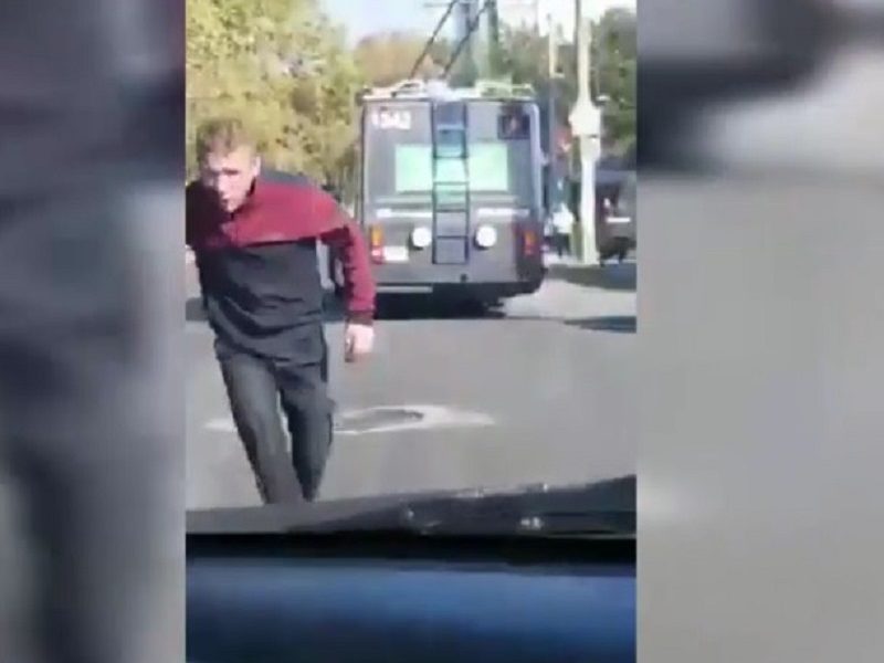 В Кишиневе неадекват пытался ворваться в троллейбус.