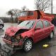 Un Renault a fost facut zob, dupa ce ar fi intrat violent intr-un camion pe o strada din capitala. Din fericire, nimeni nu a avut de suferit.