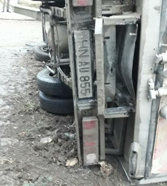 Un camion s-a rasturnat astazi in centrul orasului Nisporeni