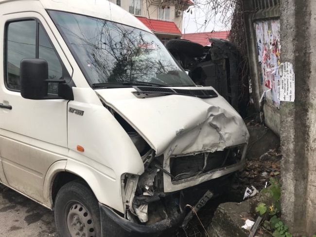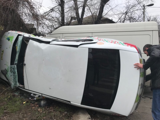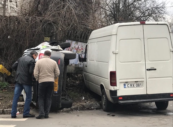 Un sofer de taxi si pasagerul sau au ajuns la spital dupa ce masina in care se aflau s-a ciocnit cu un microbuz pe o strada din sectorul Buiucani al capitalei. In urma impactului violent, microbuzul a ajuns intr-un stalp, iar taxiul s-a rasturnat.