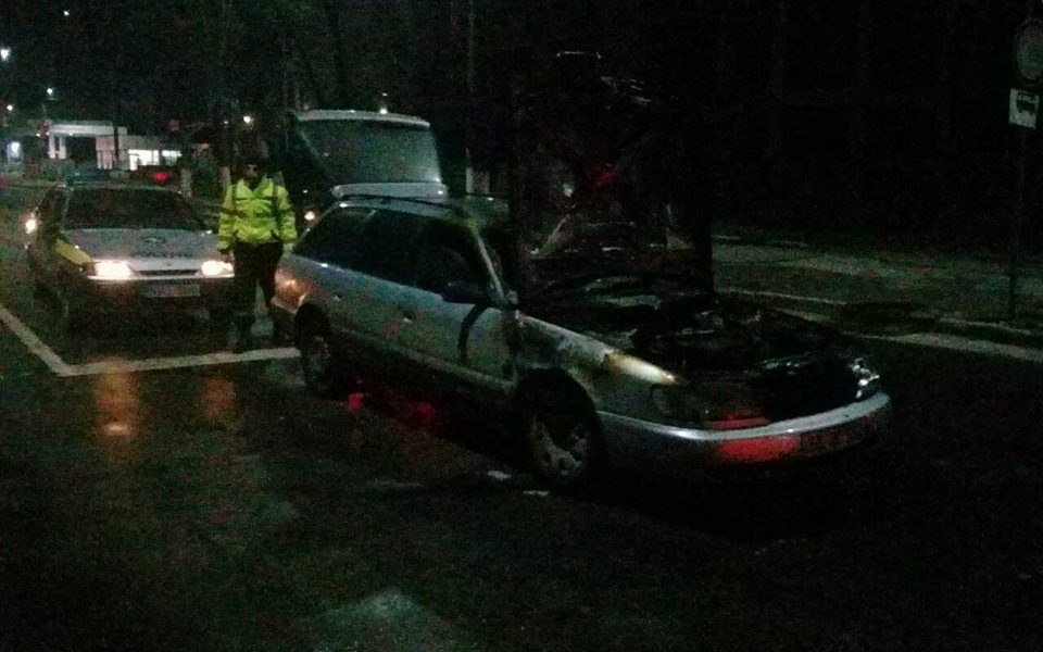 Potrivit poliției, șoferul în vârstă de 34 de ani, se deplasa la volanul unui automobil de model Audi A6, iar când staționa la semafor, automobilul a fost cuprins de flăcări.