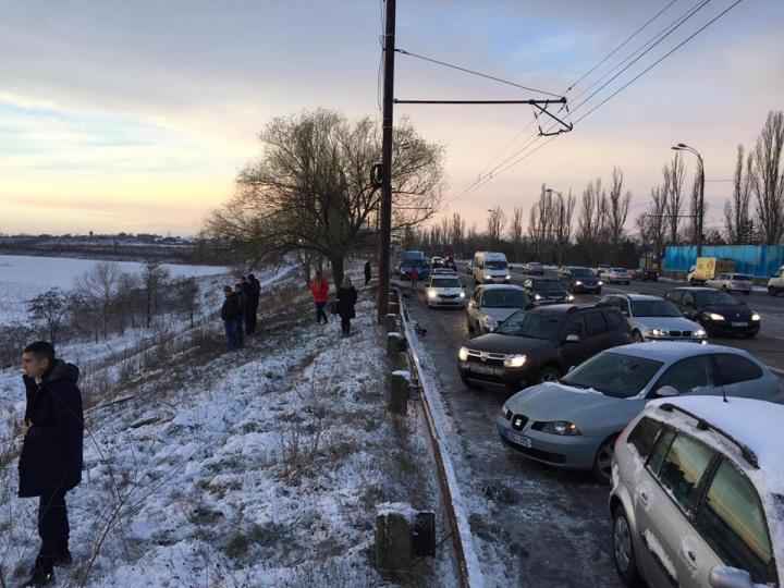 Potrivit șefului Servicii relații Pulbice al Direcției de Poliție a mun. Chișinău, Adrian Jovmir, la fața locului se află un echipaj al poliției pentru a afla toate circumstanțele accidentului.