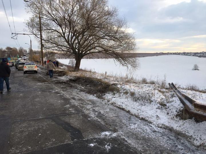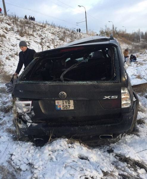 Doi oameni au ajuns azi-dimineaţă la spital după ce un autoturism BMW X5 a derapat rupând parapetul şi prăbuşindu-se în vale lângă Gara de Sud din Chişinău.