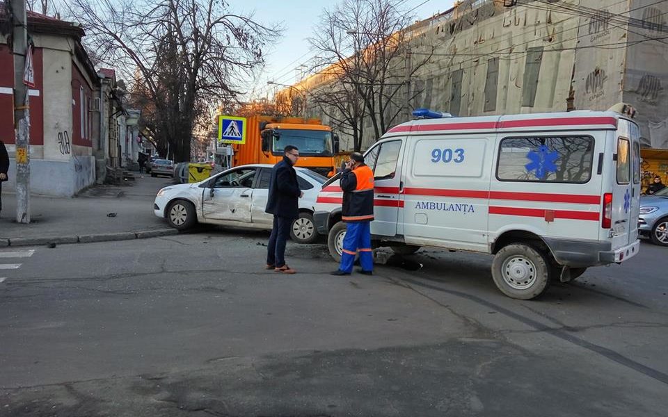 Accident cu implicarea unei ambulanțe în centrul Capitalei
