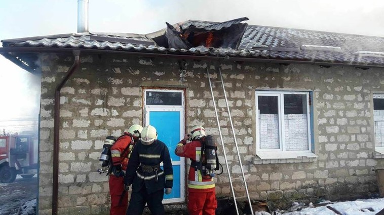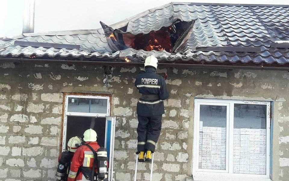 Incendiu la cantina gimnaziului din Cucuruzeni, Orhei. Patru autospeciale ale pompierilor se luptă în acest moment cu flăcările.