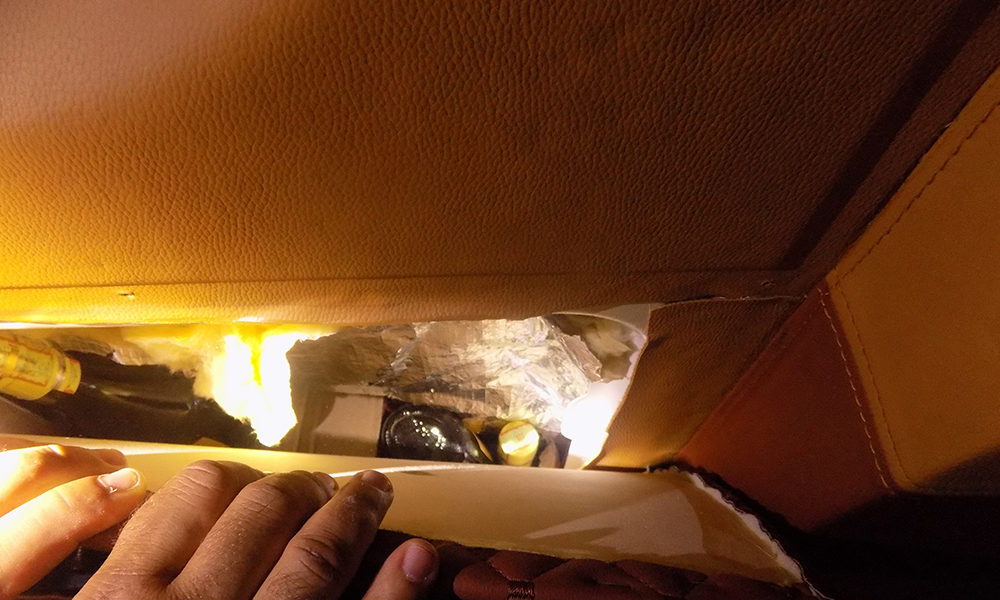 Tot, în pereții laterali erau ascunse și produsele alcoolice distilate, reținute în cel de-al treilea caz. În total, au fost descoperite 52 de sticle de divin, de producție autohtonă.
