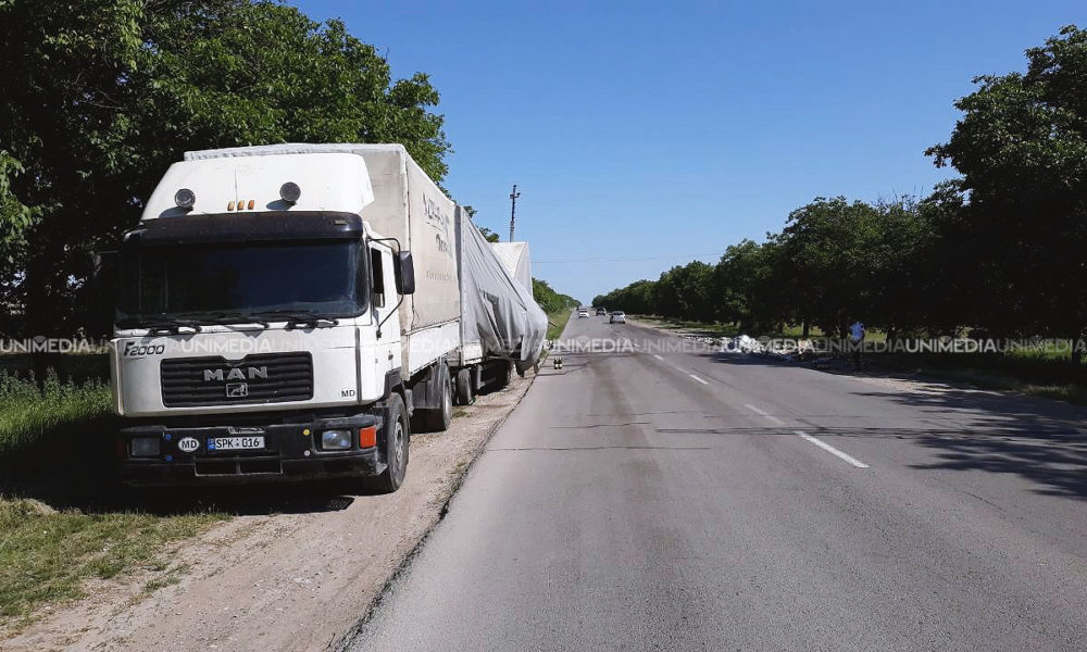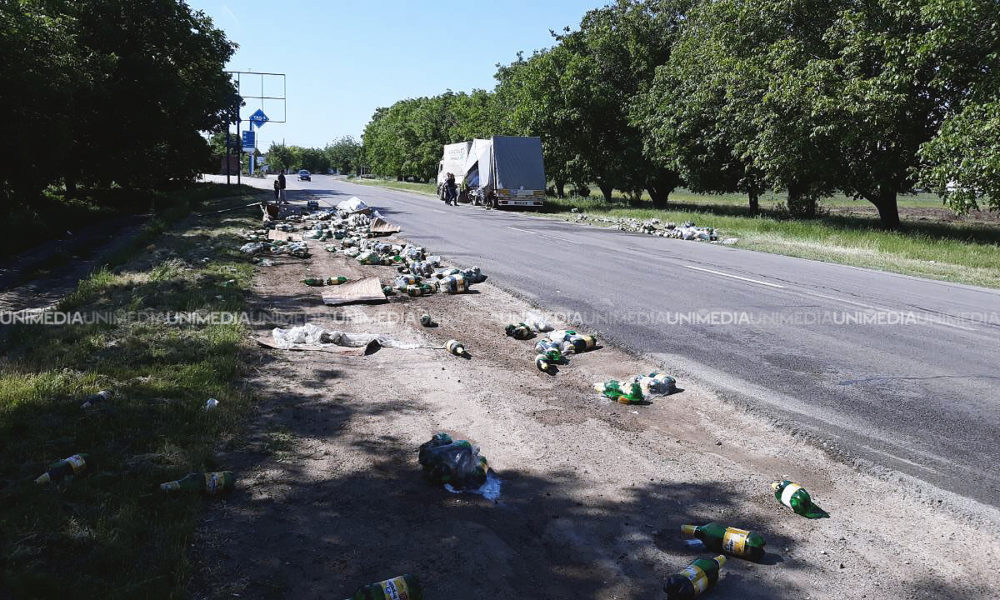 Accident cu gust de bere la Comrat: Sute de sticle au căzut dintr-un camion