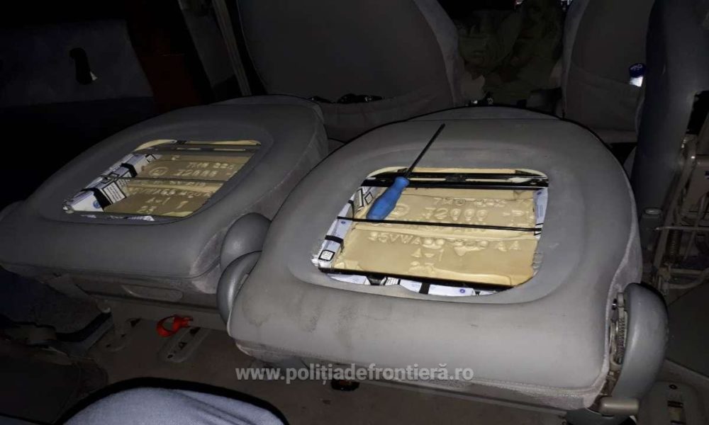 La controlul de frontieră efectuat asupra mijlocului de transport, echipa comună de control a descoperit, ascunsă în spătarul scaunului din spate a autoturismului, cantitatea totală de 2.600 ţigarete, (130 pachete) marca Ashima.