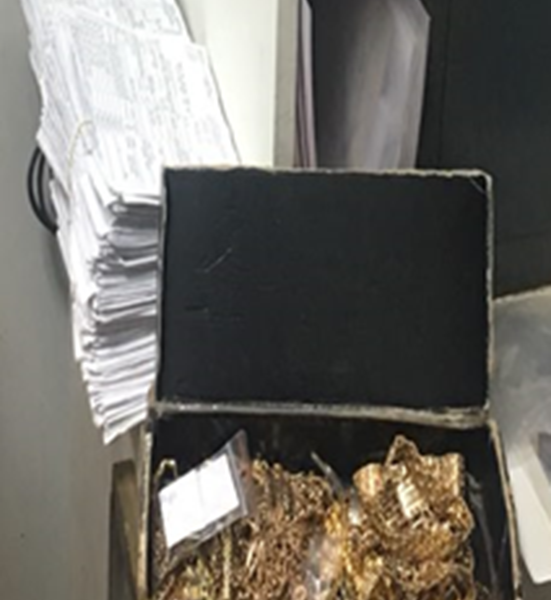 La data de 25.05.2018, au fost efectuate 11 percheziţii la domiciliile, în automobilele şi oficiile persoanelor fizice şi juridice implicate, în rezultat fiind depistată o linie clandestină cu utilaj special pentru prelucrarea, confecţionarea articolelor din aur şi argint, articole din aur şi argint în asortiment, fără acte de provenienţă şi fără marcarea corespunzătoare, în proporţii deosebit de mari, pietre preţioase fără acte de provenienţă, mijloace băneşti necontabilizate în valoare totală de peste 400 000 lei, înscrisuri de ciornă privind veniturile încasate (aşa-numita contabilitate „neagră”), purtători de informaţii şi o armă pneumatică deţinută ilegal.
