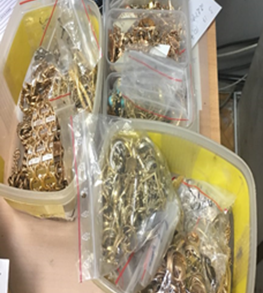 Astfel, au fost identificate mai multe case de amanet, ateliere de confecţionare implicate în această schemă ilicită, precum şi un atelier clandestin, amplasat în subsolul unei casei de locuit din mun. Chişinău.