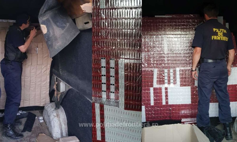 Microbuz blindat cu peste 27.400 de pachete cu ţigări, reţinut de poliţiştii de frontieră