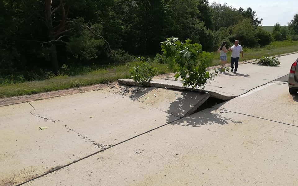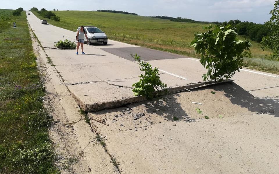 Canicula strică drumurile de la noi din țară. Pe traseul Nisporeni-Chișinău, din cauza căldurii, s-a ridicat o porțiune foarte mare de placă de beton