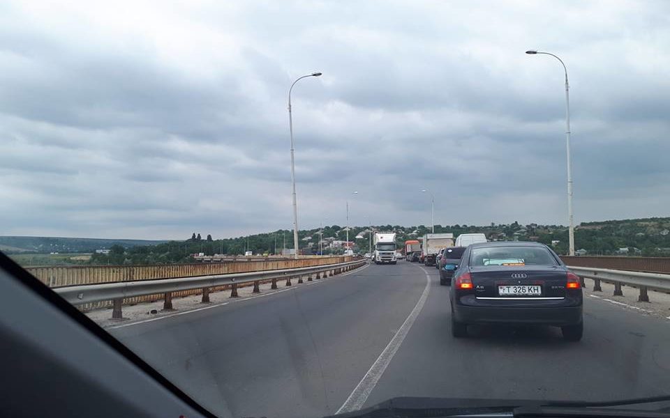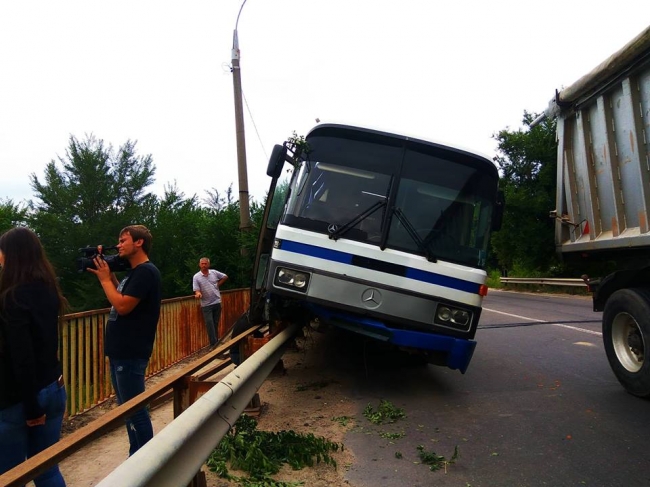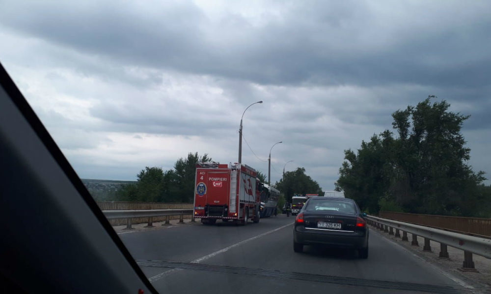 Un autobuz de pe linia Chişinău – Anenii Noi a rămas suspendat pe parapetul podului din Sângera.