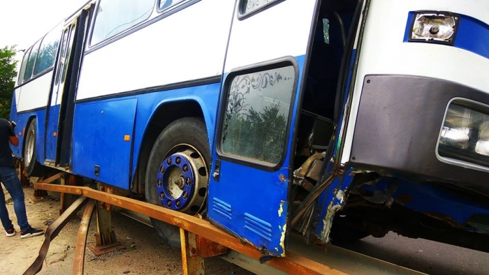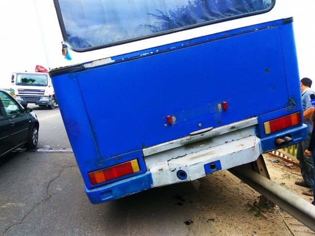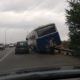 Un autobuz de pe linia Chişinău – Anenii Noi, rămas suspendat pe parapet