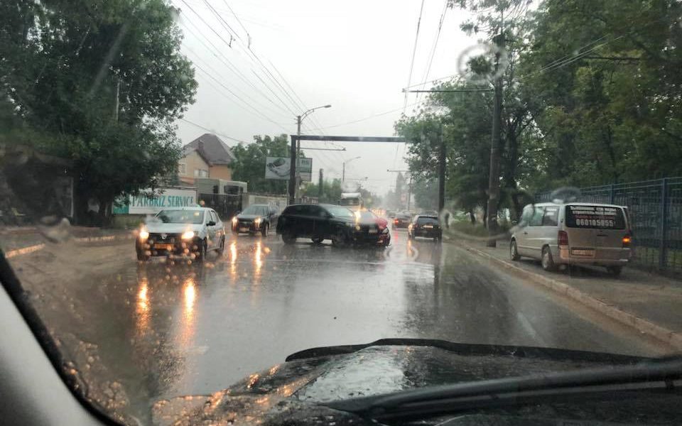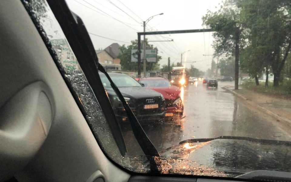 Un accident a avut loc la Ciocana astăzi, 29 iunie. Din imagini deducem că a avut loc cu puţin timp în urmă, întrucât se vede că plouă.