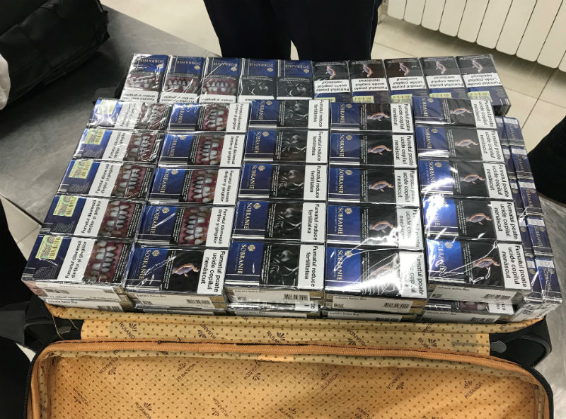 Primul caz a fost raportat de către vameșii de la aeroportul din Capitală, după ce, patrupedul Serviciului Vamal a reacționat la o valiză, înregistrată pe numele unui pasager al cursei Chișinău-Londra. În rezultatul controlului, inspectorii din tura de serviciu au depistat 10 000 de țigarete nedeclarate, cu timbru de acciz al RM.