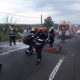 Pentru că în urma accidentului din autocisternă a început să curgă gaz metan, la fața locului au intervenit de urgență mai multe echipaje de pompieri, un echipaj de prim ajutor SMURD şi 15 militari.