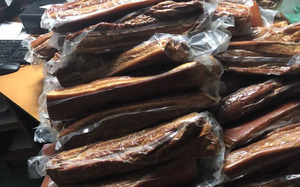 /FOTO/ PESTE JUMĂTATE DE TONĂ DE MEZELURI DIN CARNE DE PORC, DEPISTATE DE VAMEȘII DE LA OTACI