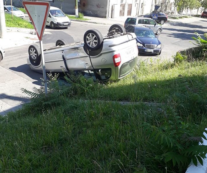 Accident în centrul Chișinăului. O mașină s-a răsturant și a ajuns cu roțile în sus după ce s-a ciocnit cu un alt automobil. Totul s-a petrecut pe 14 iulie, la intersecţia străzilor Toma Ciorbă și Mitropolitul Dosoftei. Potrivit polițiștilor, impactul s-ar fi produs după ce unul dintre șoferi nu ar fi cedat trecerea celuilalt.