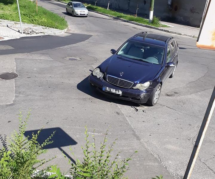 O MAȘINĂ A AJUNS CU ROȚILE ÎN SUS PE O STRADĂ DIN CENTRUL CAPITALEI DUPĂ CE S-A TAMPONAT CU UN ALT AUTOMOBIL.