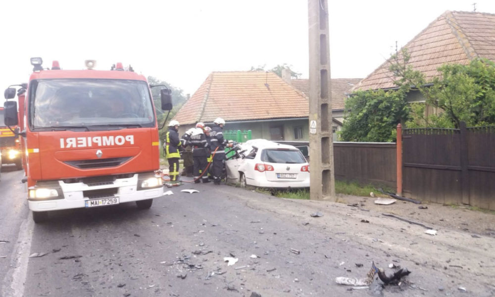 La intervenţie au participat 2 echipaje de descarcerare, un echipaj SMURD şi două de la Setviciului Judeţean de Ambulanţă.