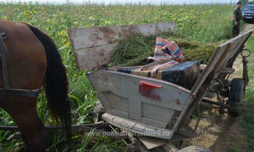 În urma supravegherii zonei, a fost observat un atelaj hipo în care era o persoană care s-a apropiat de coletele abandonate, a încărcat unul şi l-a acoperit cu lucernă. Colegii noştri au interceptat şi legitimat persoana stabilind că este cetăţeanul român Marcel L., în vârstă de 44 de ani, domiciliat pe raza judeţului Vaslui.