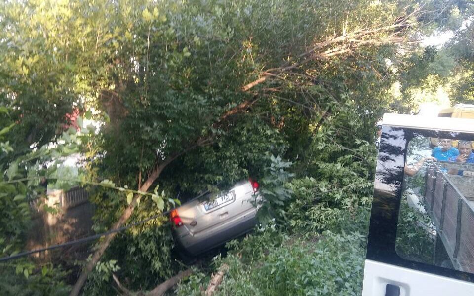 Accident violent în capitală. Un automobil s-a oprit într-un copac după ce șoferul a pierdut controlul volanului.