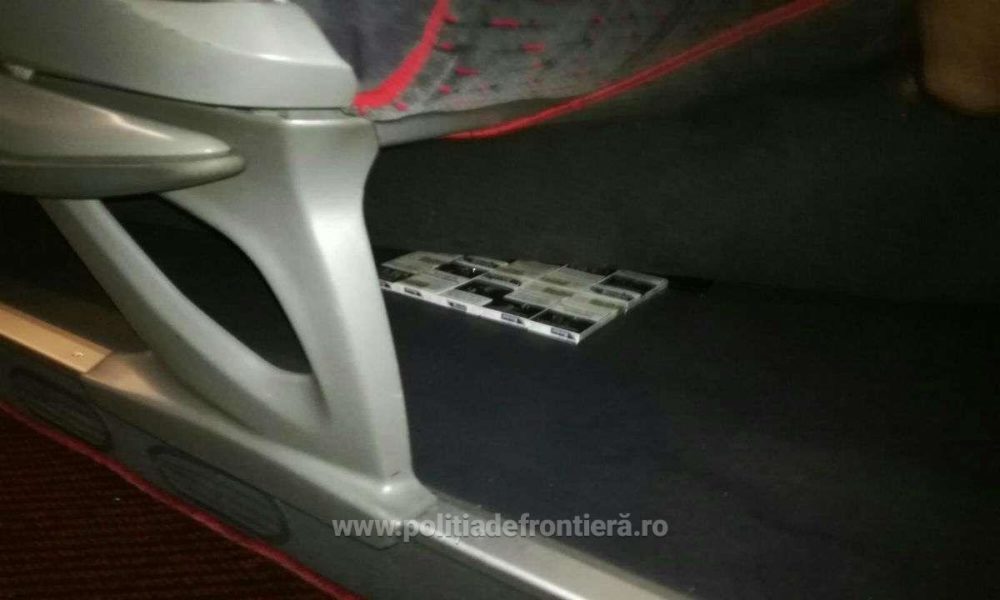 În urma unui control sumar efectuat asupra mijlocului de transport, colegii noştri au descoperit, pe podeaua de pe puntea superioară, sub scaunele pasagerilor, acoperite cu mocheta din interiorul autocarului, cantitatea de 6.000 ţigarete (300 pachete) de provenienţă R. Moldova.