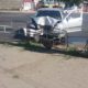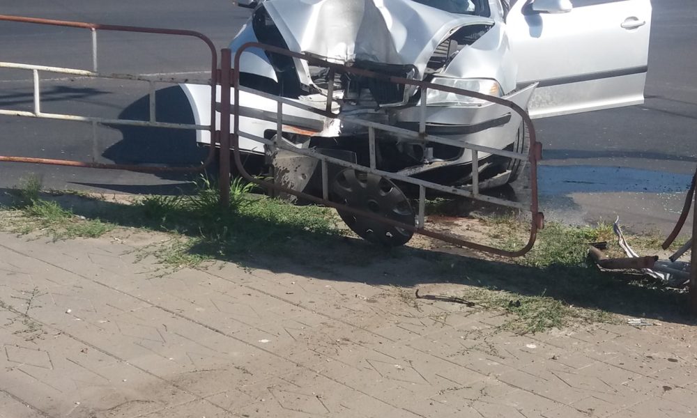 O mașină de model Skoda s-a lovit violent într-un gard, după ce șoferul a pierdut controlul volanului.