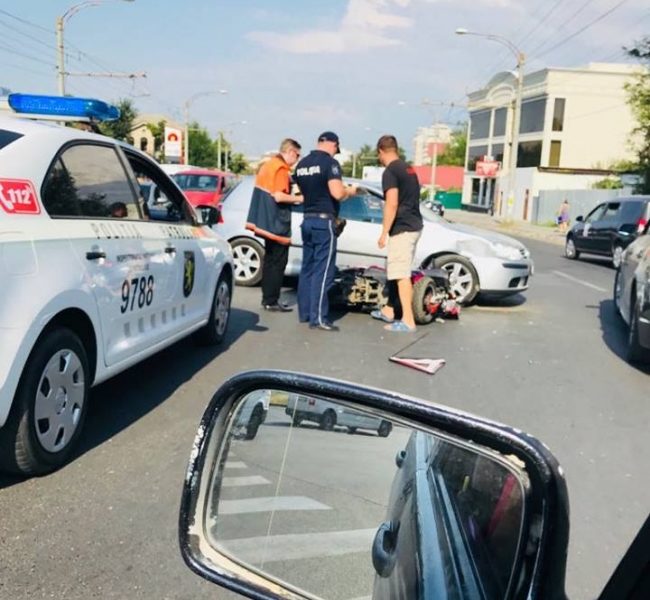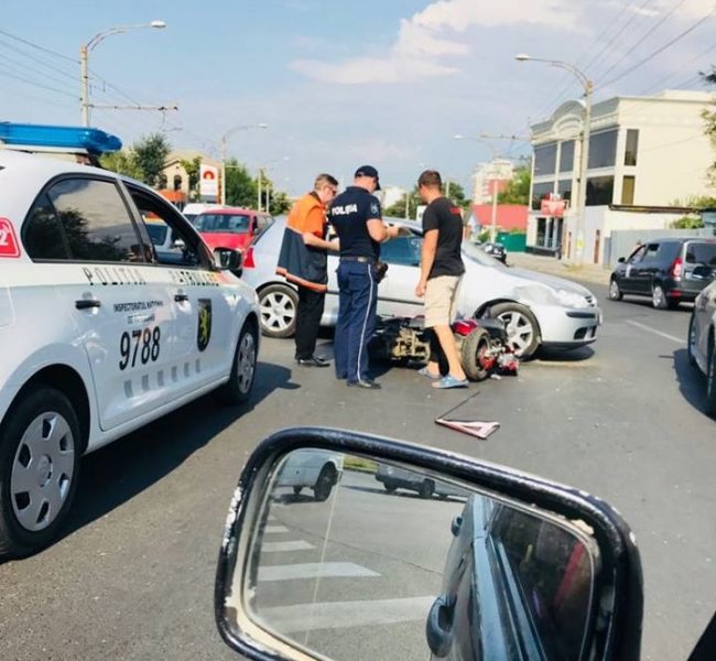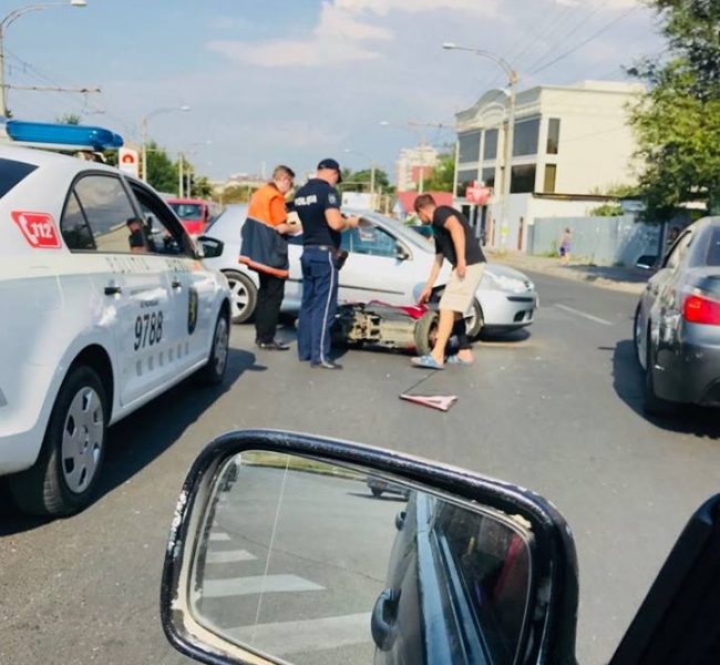 /FOTO/ O motocicleta s-a ciocnit violent cu un automobil pe o strada din capitala