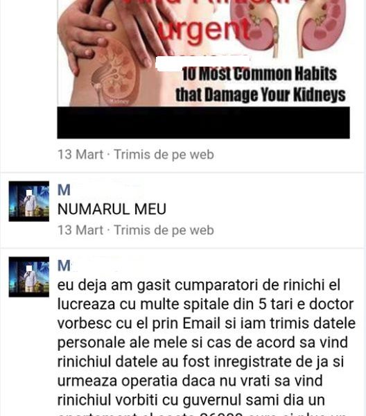 Un tânăr din Leova a vrut să-și vândă un rinichi pentru a-și cumpăra un apartament în Chișinău și a trăi separat de familia sa. Acesta a plasat mai multe anunțuri pe internet precum că vrea sa-și vândă rinichiul.