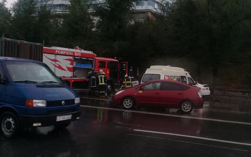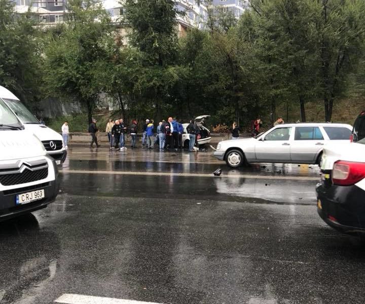 Accident cumplit în Chișinău. Un șofer a rămas blocat între fiarele automobilului după ce mașina pe care o conducea s-a tamponat cu alte două autoturisme.
