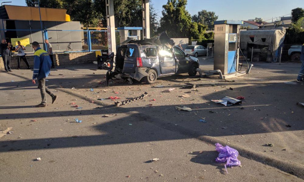 /FOTO/ BOMBĂ PE ROȚI: O mașină care se alimentează cu gaz a sărit în aer, la o stație PECO din Chișinău.