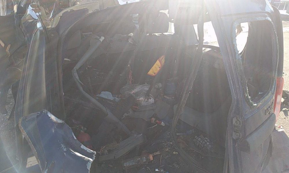 Din imaginile postate pe un grup de socializare, se vede că explozia a fost una puternică pentru că automobilul practic a rămas și fără acoperișul în partea din spate.