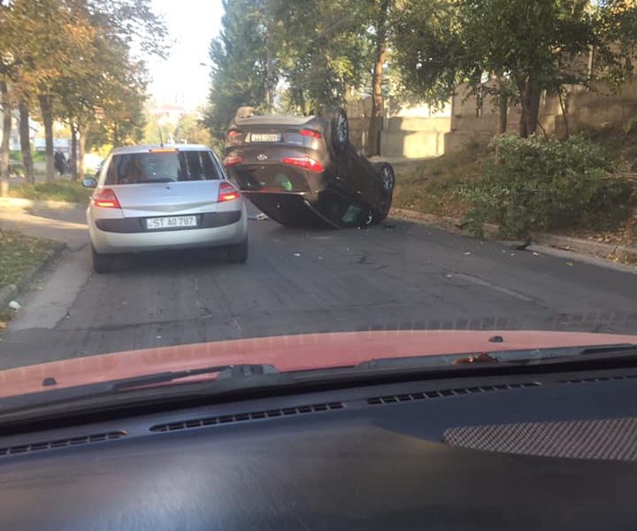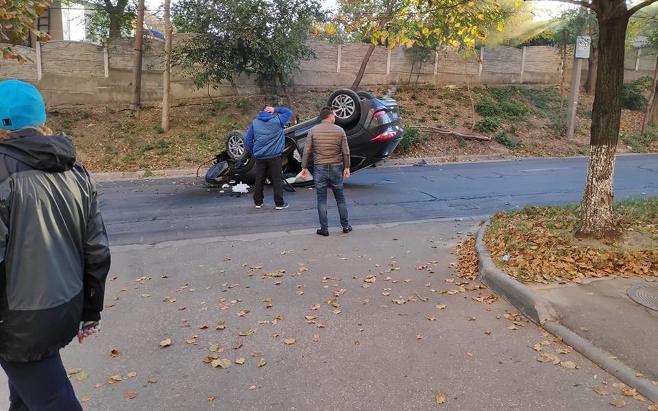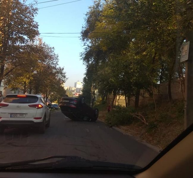 Accident pe strada Valea Trandafirilor din sectorul Centru al Capitalei. Potrivit poliției, o mașină a ajuns cu roțile în sus, după ce s-a tamponat violent cu un alt automobil.