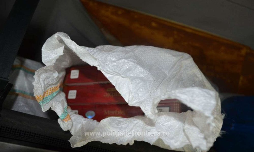 Având informaţii că autocamionul este folosit pentru transportul ţigaretelor de contrabandă, colegii noştri au efectuat un control amănunţit, ocazie cu care au fost descoperite, în cabina autocamionului, ascunse în doi saci de rafie, 12.000 de ţigarete (600 de pachete), fără timbru de acciză.