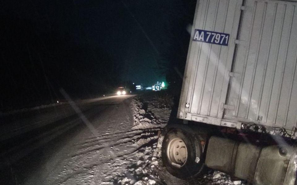 Minute de panică pentru un șofer de camion din Republica Moldova. Din cauza ghețușului și a condițiilor grele de drum, acesta a ajuns cu vehiculul pe care-l conducea într-un șanț de pe marginea drumului.