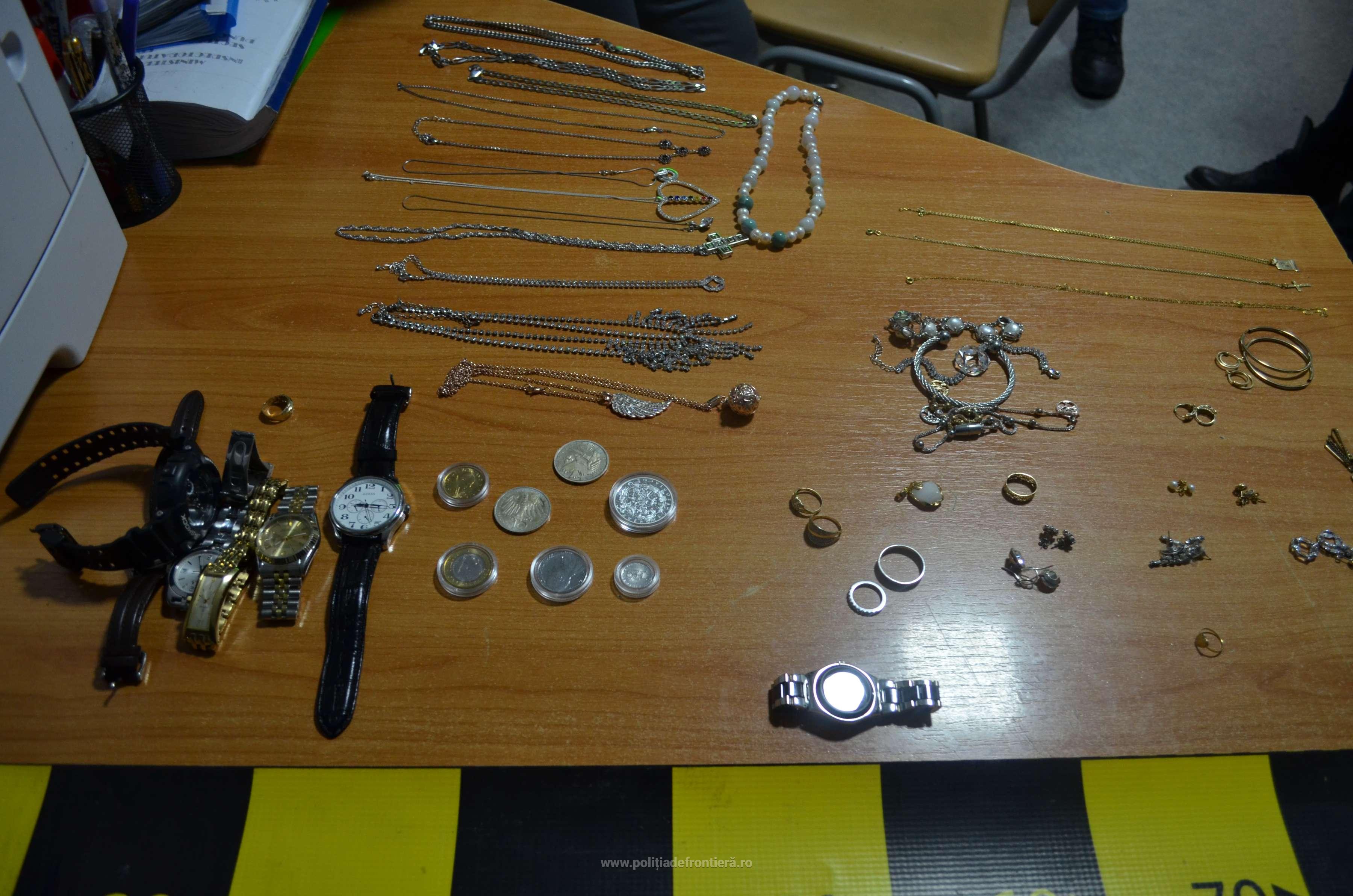 Totodată, în autoturismul marca Ford au mai fost descoperite 65 de grame de bijuterii din metal galben, 300 grame de bijuterii din metal alb, şapte ceasuri de mână de diferite mărci și două televizoare diferite mărci, fără documente de provenienţă.
