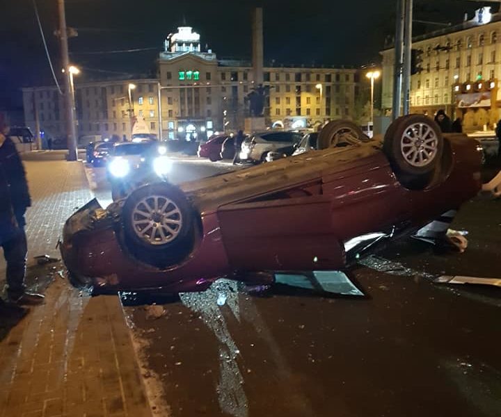 /FOTO/ Accident cumplit în centrul Chișinăului. Trei automobile, făcute zob. O pasageră a sărit, din mers, din mașină.
